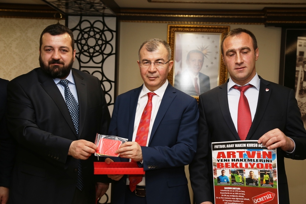 Artvin İl Hakem Kurulu Başkanı Halit Uçar Artvin Valisi Yılmaz Doruk’u ziyaret ederek, futbol aday hakemliği kursu ve mevcut çalışmalar hakkında bilgi verdi.