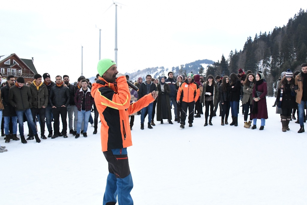 AÇÜ Diyetisyenlik 1.Sınıf öğrencisi Gizem Kalın, “Burada her yer bembeyaz. Çok eğleniyoruz. Halay çektik, kartopu oynadık, voleybol oynadık. Kayak yaptım, dolu dolu bir gün. Sınav öncesi stres attık. Üniversitemize bu etkinlik için teşekkür ediyorum” dedi.