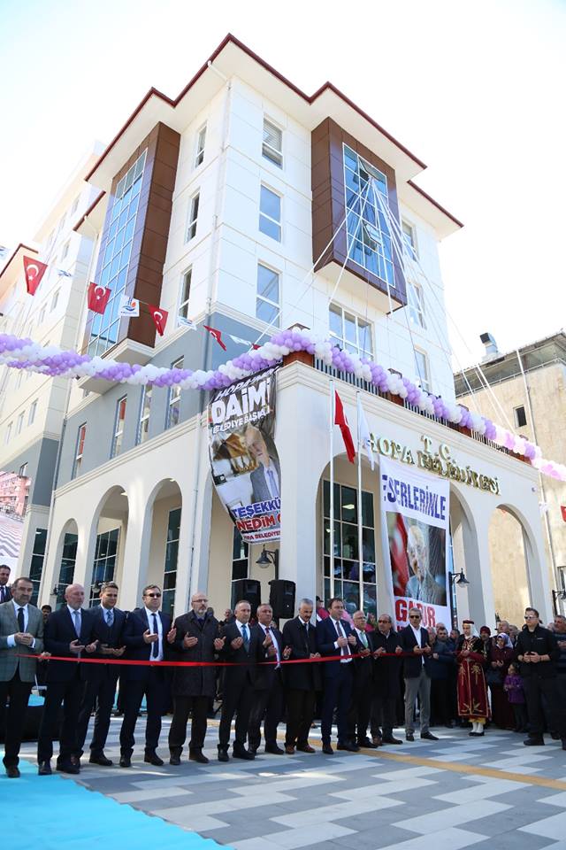 Hopa İlçesinde inşası tamamlanan yeni kaymakamlık ve belediye hizmet binası ile derin deşarj, asansör ve seyir terasını törenle hizmete açıldı.