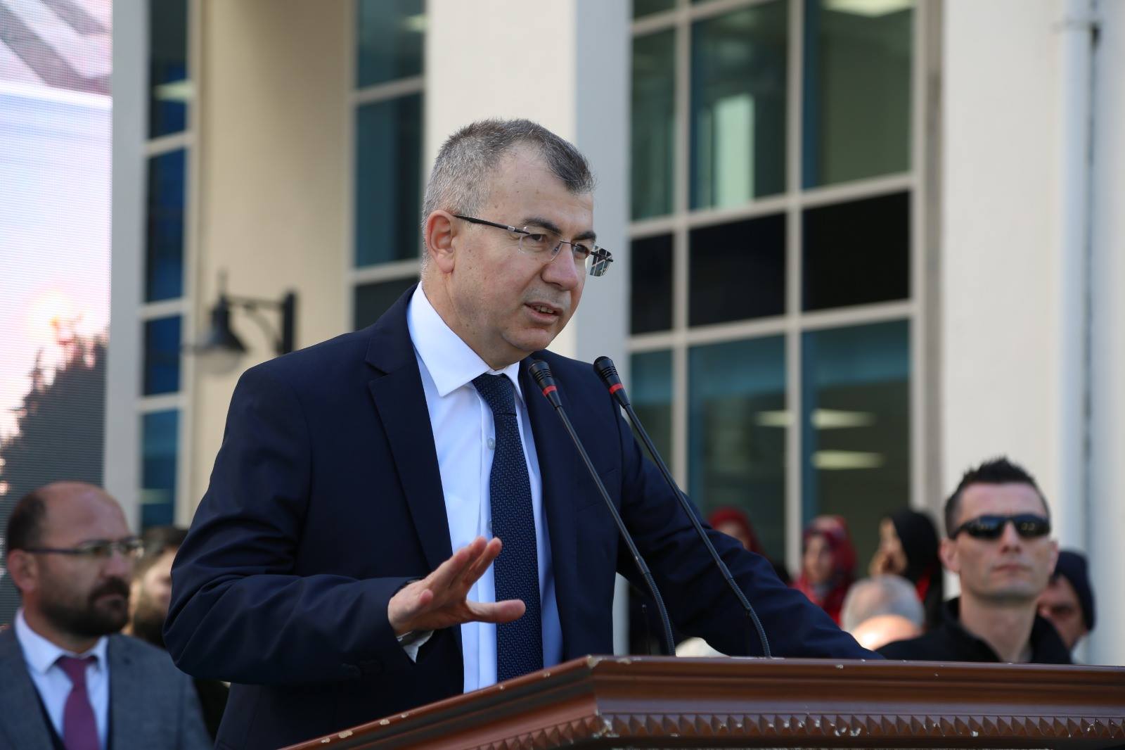 “Böyle bir ilçemizin hükümet konağı, belediye binası, içme suyu, alt yapı gibi temel sorunlarının halledilmemiş olması çok önemli bir eksiklikti. Bugün bu sorunların çözüldüğünü görüyoruz. Bu hizmetlerin yapılmasında emeği geçen herekse teşekkür ediyorum. Güzel bir eser ortaya çıktı. Bir yerleşim yerinin kimliğini oluşturacak tarzda mimari ile inşa edilen yapılardır. İlçemize çok yakıştı. İlçemize hayırlı olsun. Personelimiz daha nezih bir ortamda çalışacak ve vatandaşlarımızda daha iyi hizmet almış olacak.”