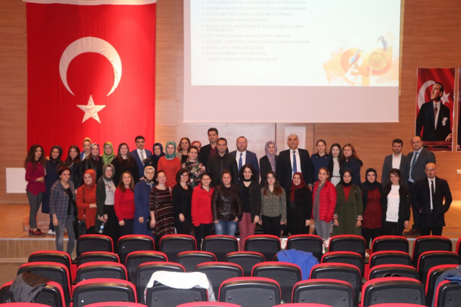 Kahveci, Milli Eğitim Bakanlığı Strateji Geliştirme AR-GE Kalite ve İzleme Dairesi Başkanı Mehmet Baki Öztürk’e ve konferansa katılan öğretmenlere teşekkür etti.