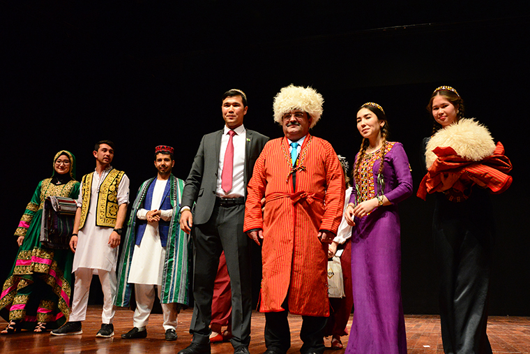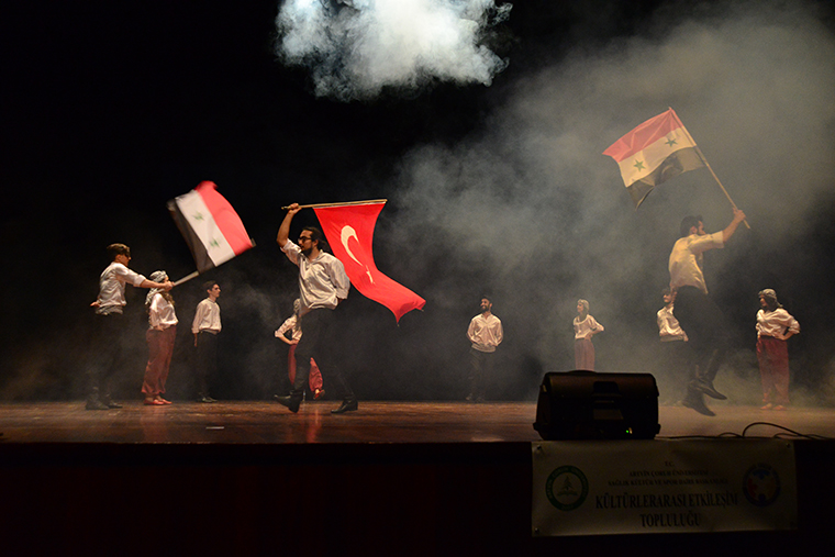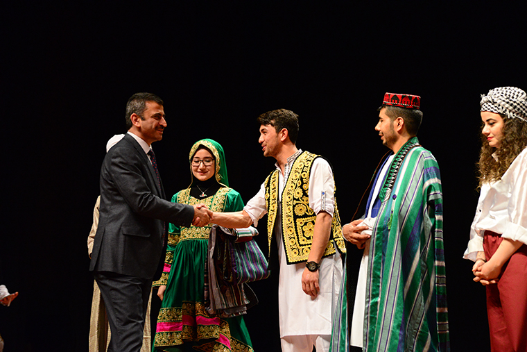 Etkinlikte konuşmaların ardından gösterilere geçildi. Azerbaycan, Afganistan, Çad, Irak, Suriye ve Türkmenistan’dan gelen öğrencilerimiz tarafından yöresel halk oyunları gösterilerinin sunulduğu programda, farklı kültürlerde gündelik yaşantıyı resmeden sunumlara, tiyatro oyunlarına, şiirlere ve şarkılara yer verildi. Program sonrasında Rektörümüz Prof. Dr. Fahrettin Tilki, Belediye Başkanı Mehmet Kocatepe ve İl Göç İdaresi Müdürü Emre Canpolat’a Kültürlerarası Etkileşim Topluluğu öğrencileri tarafından, ülkelerinin simgesi haline gelen geleneksel kıyafetler giydirildi.