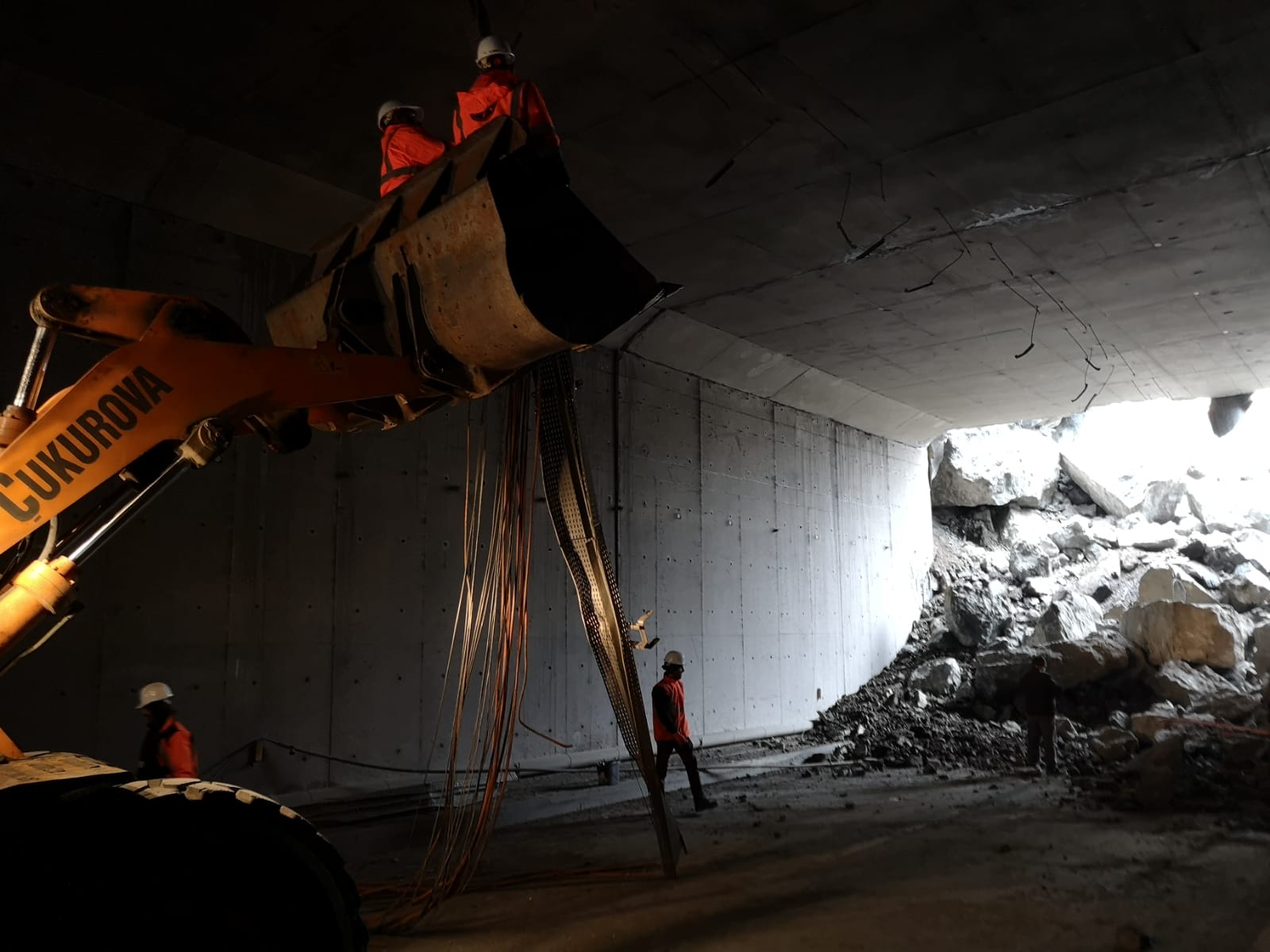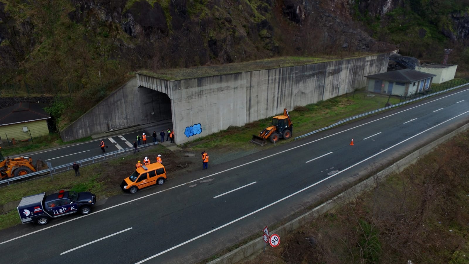 Karayolları yetkilisi Fikret Öztürk yaptığı açıklamada, “yamaçtan büyük kaya kütlelerinin kopması nedeniyle tünelin ana gövdesine koruma amaçlı yapılan beton yapıda çökme oluştu. Tünelin yaklaşık 50 metrelik bir bölümü kapsıyor bu çökme. Tünelin içerisi beton bloklarla dolu şuan. Yolu tek şerit şeklinde trafiğe açtık. Bölgeye dağcı ekipler ve uzmanlar gelerek gerekli kontroller yapılmasının ardından çalışmalar başlayacak.