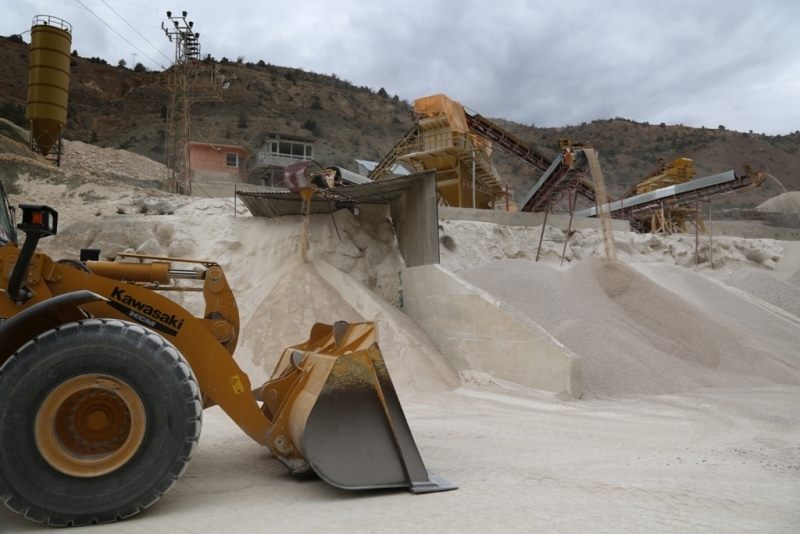 Asfalt Plent şantiyesinde bulunan kırma eleme tesislerinde günlük ortalama 800 ton civarında filler malzeme imal edildiği kaydeden Yazıcı , “Kırma tesisi 300 ton 0,5 mm kum imal edilen malzeme sıcak karışımlı asfalt ve beton ham maddesi olarak kullanılmaktadır” diye konuştu.