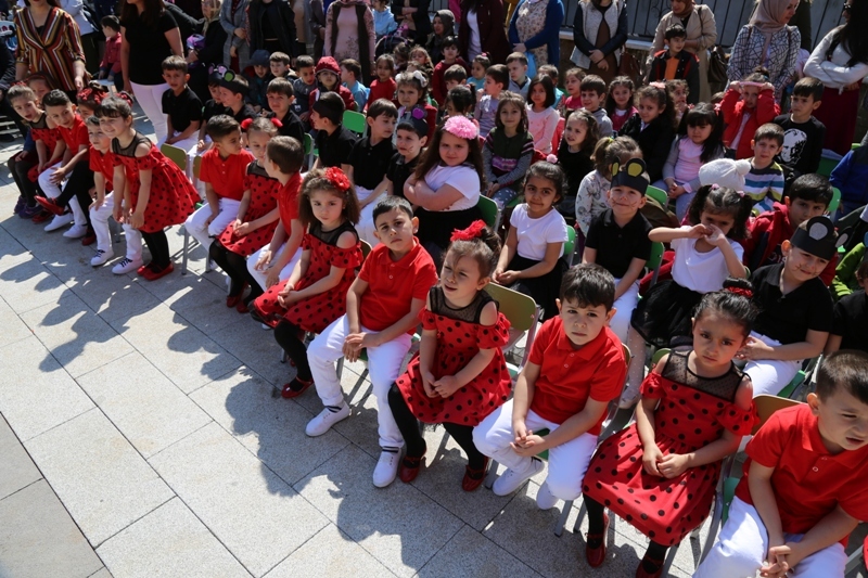 Protokol konuşmaları sonrası anaokulu öğrencileri kısa bir gösteri yaptı.