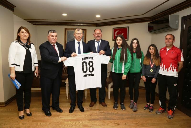 Artvin Valisi Yılmaz Doruk, Artvin Ormanspor Kulübü Başkanı Alim Çelik, yönetim kurulu üyeleri ile kulübün sporcularını kabul etti.