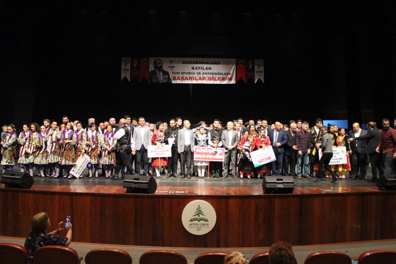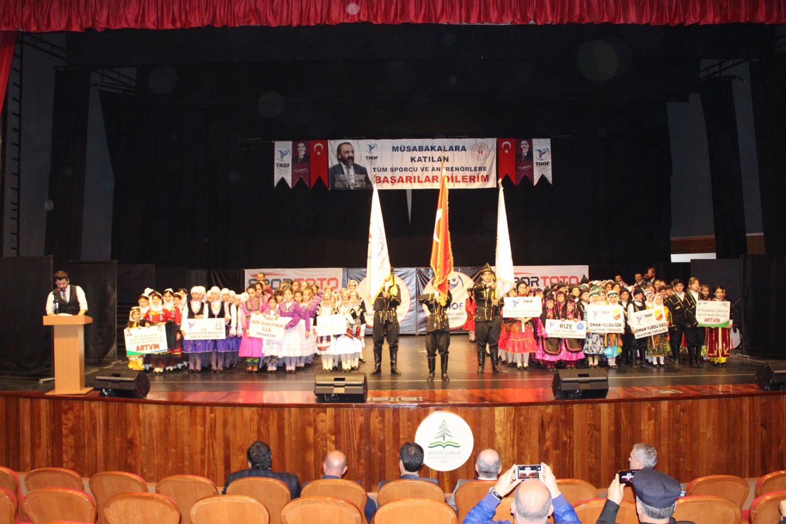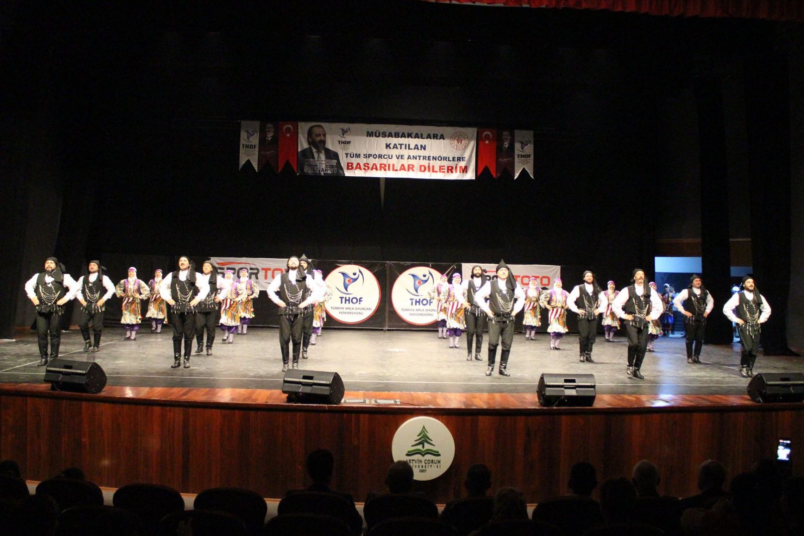 Halk Oyunları Yarışmalarını, Artvin Valisi Sayın Yılmaz DORUK, Açü Rektörü Fahrettin TİLKİ, Gençlik ve Spor İl Müdürü Bahattin YETİM, Türkiye Halk Oyunları Federasyonu Yönetim Kurulu Üyesi Cihan KIVANÇ, Mehmet ÖNGÜNER, Dış İlişkiler Kurulu Üyesi Nurettin ALBAYRAK ve çok sayıda vatandaş izledi.