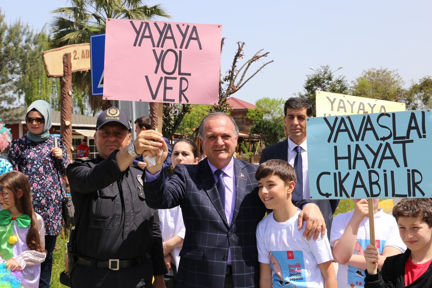 Sahil caddesi özgürlük heykeli önünde gerçekleştirilen programda MNG İlköğretim Okulu öğrencilerinin hazırlamış olduğu gösterilerle yaya öncelikli trafik bilincinin arttırılması için farkındalık oluşturuldu. Belediye Başkanı Vasfi Kurdoğlu ile birlikte broşür dağıtan öğrenciler, trafiği durdurarak emniyet kemerini takmayan sürücülere uyarılarda bulundu.