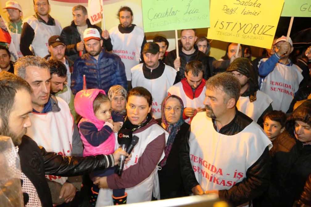 İşveren ile masaya oturup fabrikanın açılması noktasında talepleri olduklarını, aksi takdirde işçilerin mağdur olacağını dile getiren Tek Gıda-İş Sendikası Dosan Şube Başkanı Mustafa Yüksel, “Bildiğiniz üzere bölgemizde 3 tane Unilever’e bağlı Lipton çay fabrikası vardır. Maalesef ülkedeki ekonomik krizden dolayı, kuru çay satışı olmadığından dolayı şirket zaman zaman tasarrufa gitti burada. Daha önce ki kapasitenin yüzde 30 civarında altına düşeceğini söyledi. Üretimi de iki fabrikada yapıp tonajını tamamlayacak olduğunu söyledi. Bizde Unilever genel merkezinde şube yöneticilerimiz ile birlikte yaptığımız toplantılarda bu insanların kıştan çıktığı, işsiz olduğu ceplerinde 1 lira bile olmadığını ve fabrikanın açılıp çoluk çocuğuna ekmek getireceğini, çocuklarının eğitimi için buna ihtiyaçları olduğunu ifade ettik. Sunduğumuz teklifleri değerlendirmediler” dedi.
