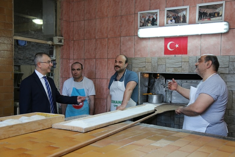 Vali Doruk, müftülük binasının bitişinde bulunan ve yaklaşık 60 yıldır hizmet veren Güven (Kelleci) Ekmek Fırınını ziyaret etti.