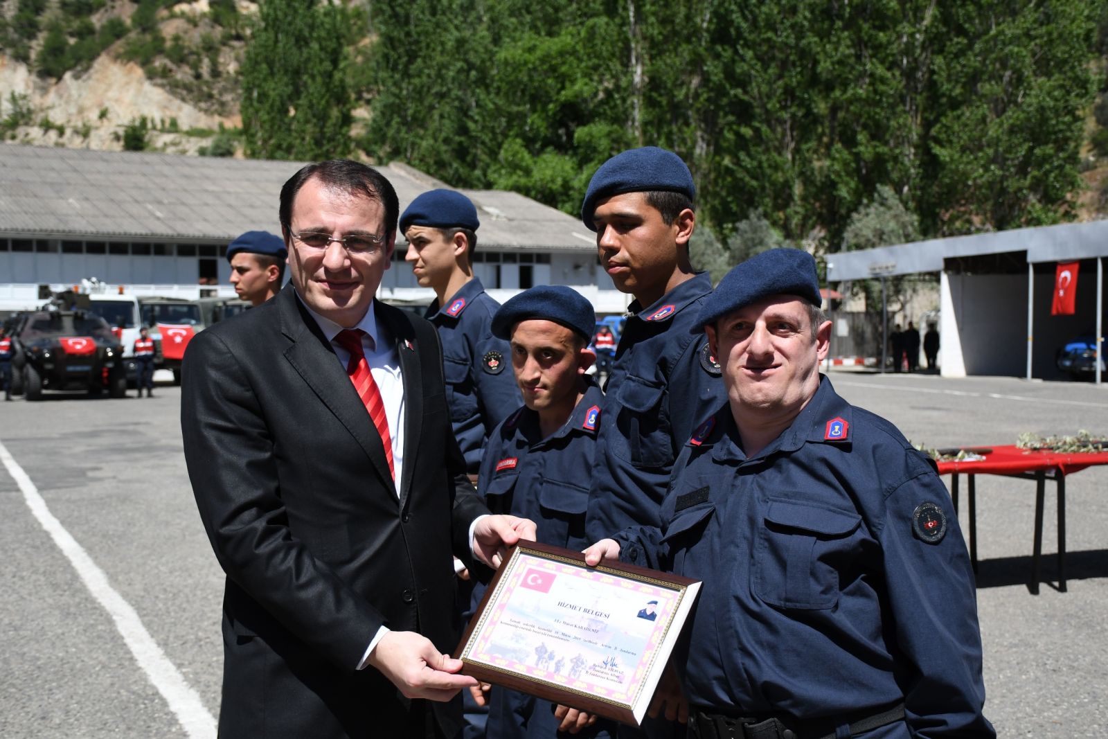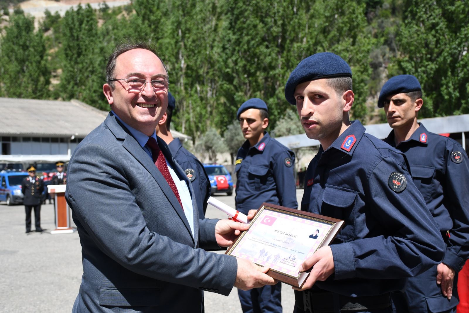 Konuşmaların ardından yapılan yemin töreni sonrasında Vali Yardımcısı Türker, Belediye Başkanı Elçin ve protokol üyeleri tarafından yemin eden askere teskere belgeleri verilerek program sona erdi.