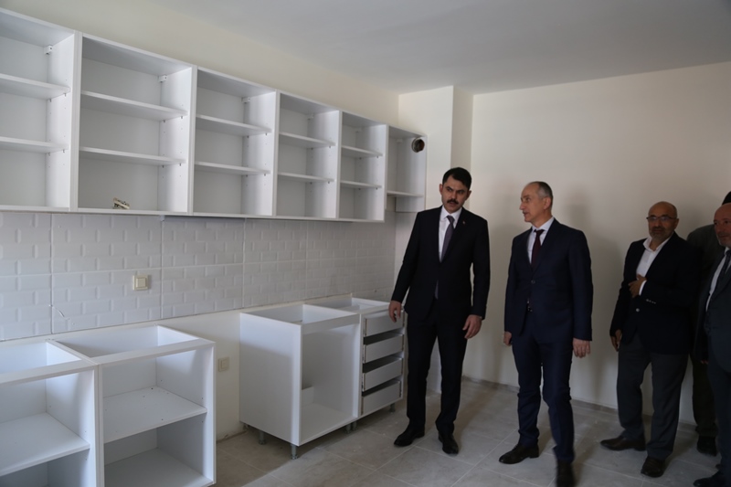 Yapılacak projeleri incelediklerini vurgulayan Kurum, "Şu an bulunduğumuz alanın güneyinde yer alan alanda da şehir merkezinin inşası yapılıyor. Şehir merkezinin içinde camimiz, ticari dükkanlarımız, okulumuz, kaymakamlığımız, spor salonumuz, müftülüğümüz gibi ilçenin ihtiyacı olan tüm birimlerin inşası burada gerçekleşiyor. Diğer bölgelerde de vatandaşlarımızın konut, barınma ihtiyacını gidermek amacıyla hem ticari üniteler hem sosyal donatılar hem de konutların inşası gerçekleştiriliyor." dedi.
