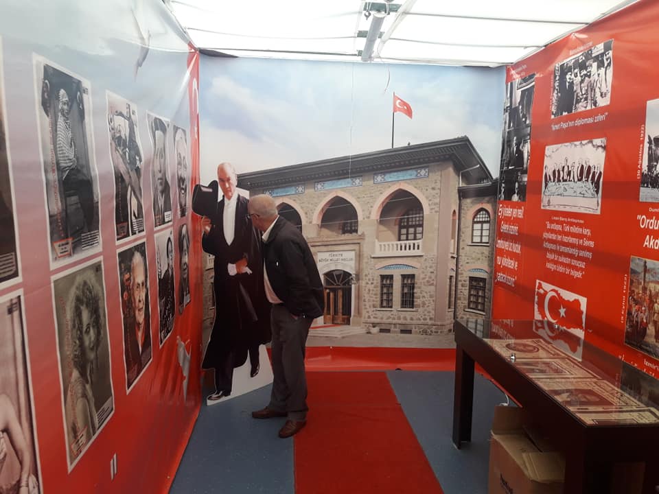Bundan dolayı da Atatürk sevgisi çok özel bir yer tutar. 102 yaşındaki Hacı Ali Keklik amcamız da henüz 7 aylık Ata bebek de annesiyle bu sergiye geldi