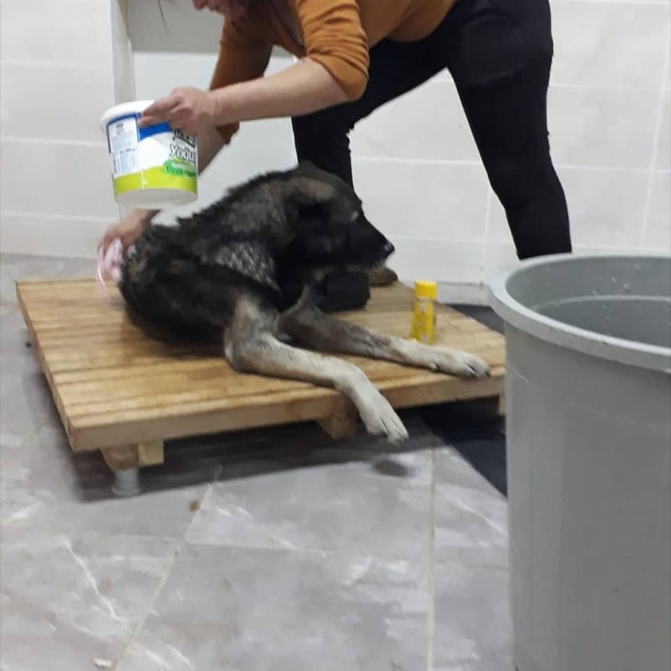 Bayramın 1. Günü Deriner baraj göletinden Berta Köprüsü yakınından bir kopek çıkardılar. Arka ayakları tutmaz durumda. Burada yapılacak bir şey yok. Nakil edebilmemiz için desteğe ihtiyaç var. Bu yüzden bir şey yapamıyoruz, bu şekilde bakıyoruz.