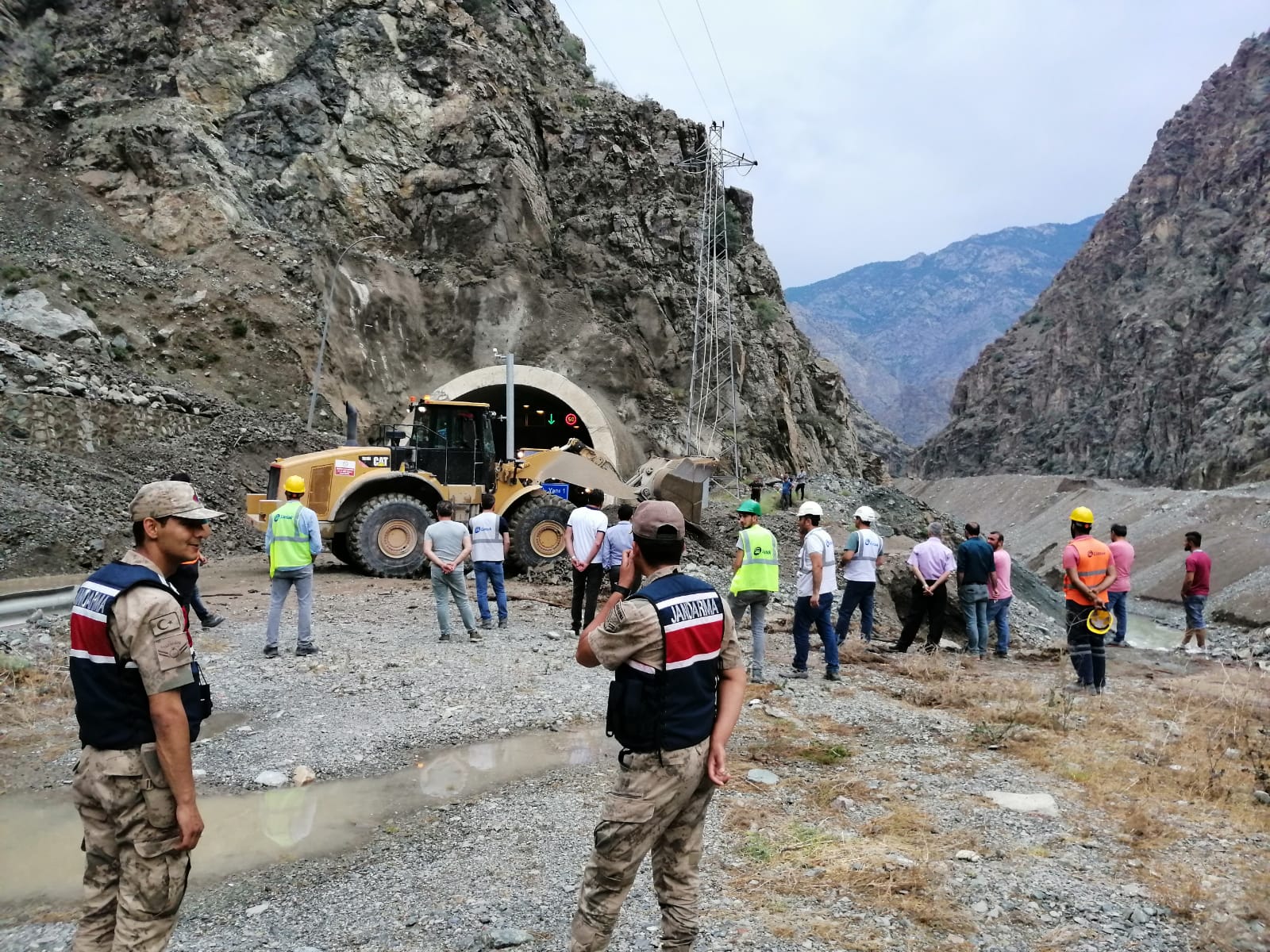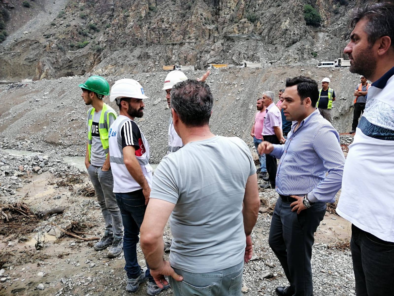 Tek şeritli olarak trafiğe açılan yolda ikinci şeridi de trafiğe açmak için çalışmalar devam ederken, Yusufeli Kaymakamı Eyüp Kaykaç’da heyelanın olduğu bölgeye incelemelerde bulundu.