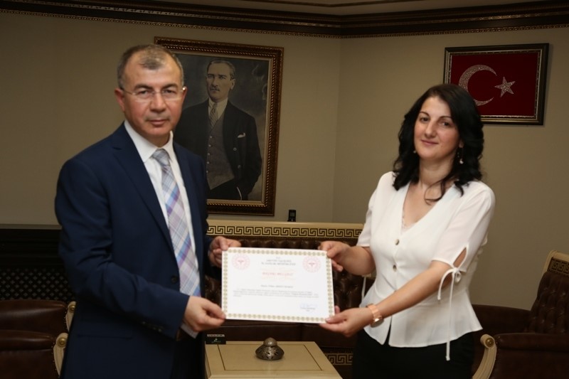 Artvin İl Sağlık Müdürü İrfan Akalın’ında hazır bulunduğu ziyarette Vali Doruk makamında kabul ettiği Hekim ve Sağlık Personelini tebrik ederek “Başarı Belgesi” ile ödüllendirdi.