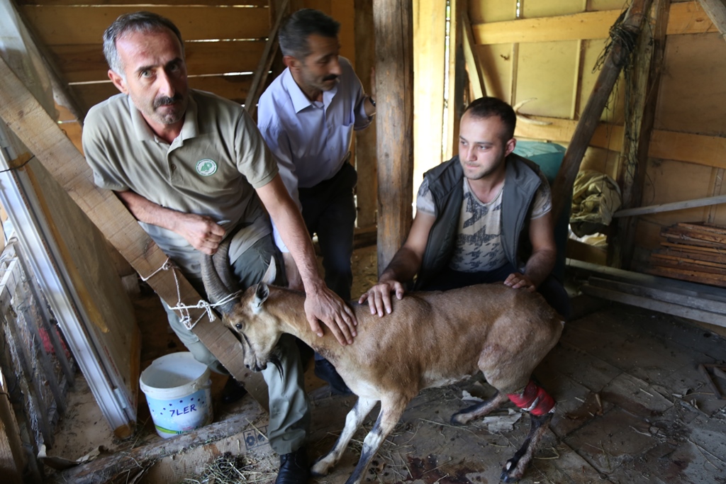 Doğa Koruma Milli Parklar ekiplerince teslim alınan yabankeçisinin yaraları ekiplerce tedavi edildi. Bir süre kontrol altında tutulacak olan keçi, daha sonra yenide doğaya salınacak.