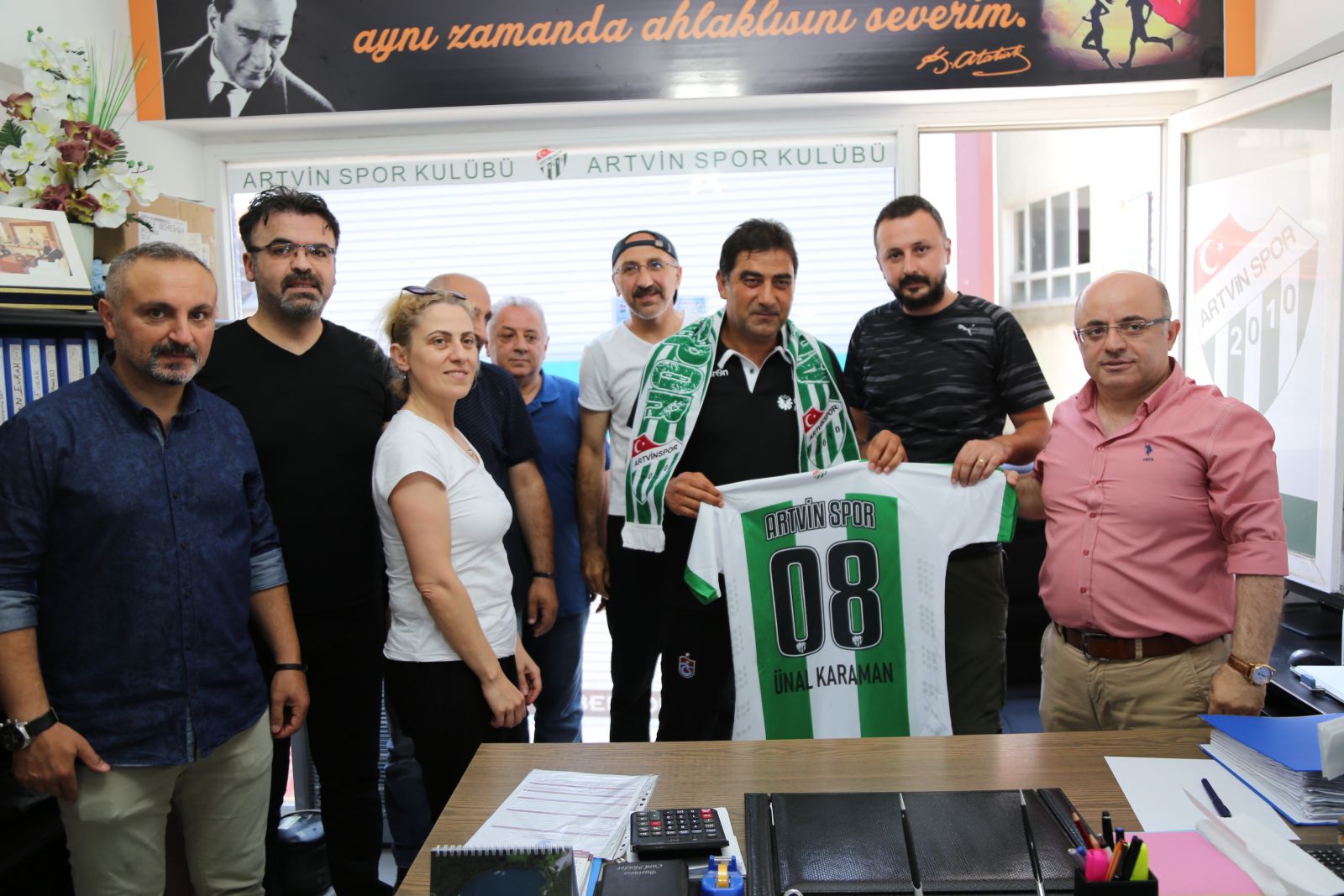 Ziyaret sonunda Artvinspor Başkanı İrfan Yıldırım, Karaman’a Artvinspor forması ve atkısı hediye etti.