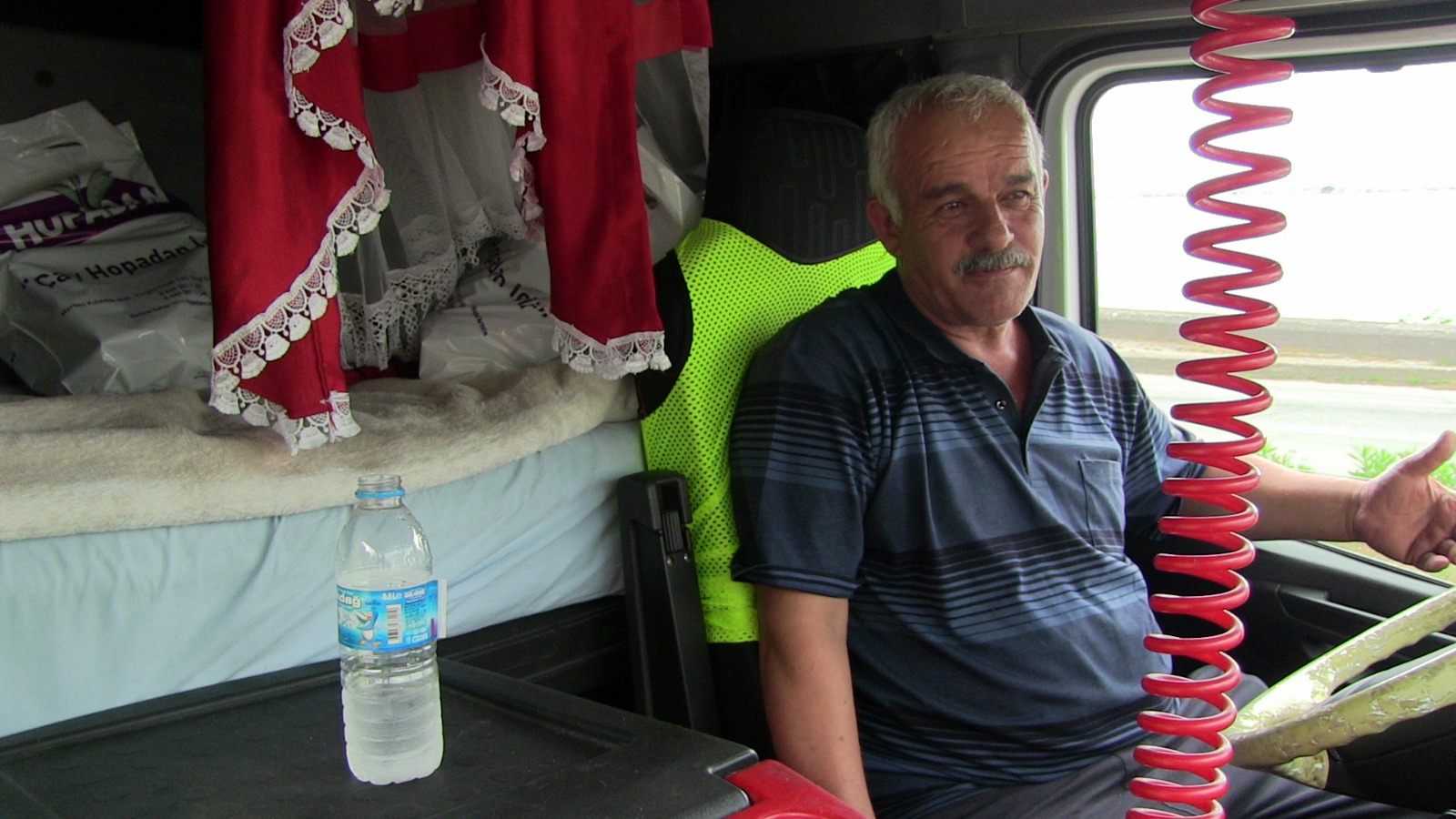 Araçlarında yatıp kalkan sürücüler, şoför esnafın sahibi yok mu sorularına yanıt aradıklarını ve aracındaki koltuk arkası yatak odasını göstererek, burada yatıp kalkıyoruz, namaz kılmak istiyoruz ancak kıblemiz belli değil dediler.