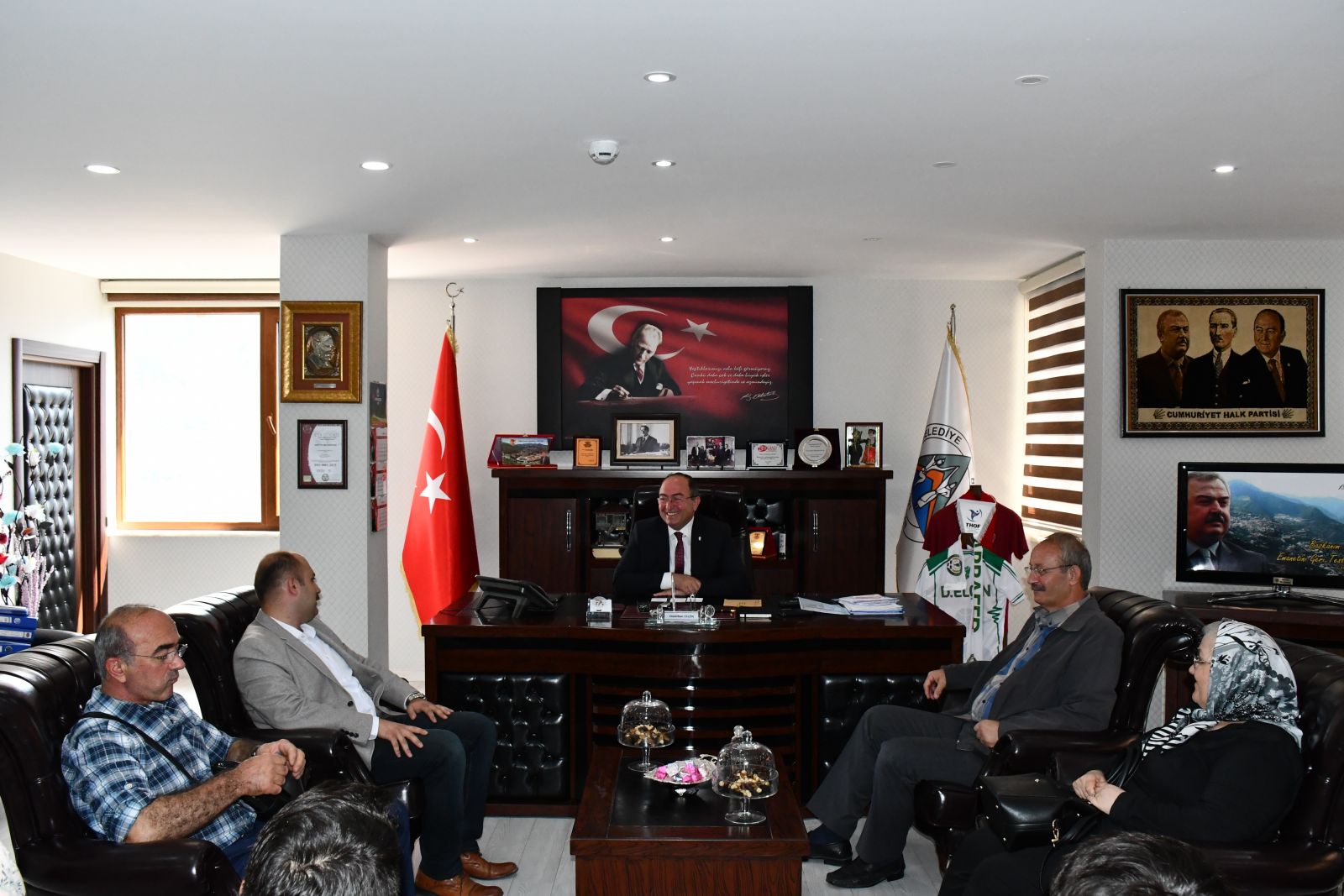 Konuşmaların ardından Cumhuriyet Halk Partisi Merkez İlçe Yönetimi, Belediye Başkanı Demirhan Elçin ile hatıra fotoğrafı çekinerek makamdan ayrıldı.