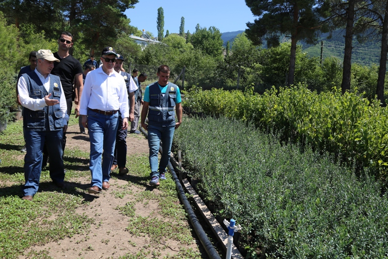 Daha sonra Ardanuç Harmanlı Fidanlığına giden Vali Doruk, gelir getirici türlerin yetiştirildiği fidanlığı gezdi.