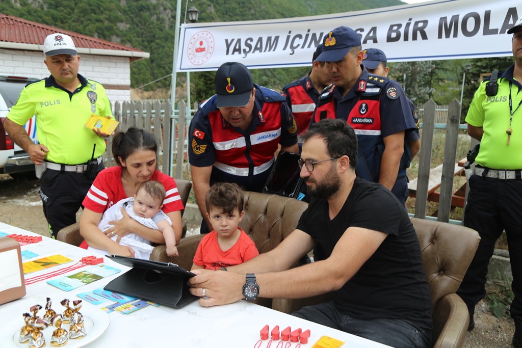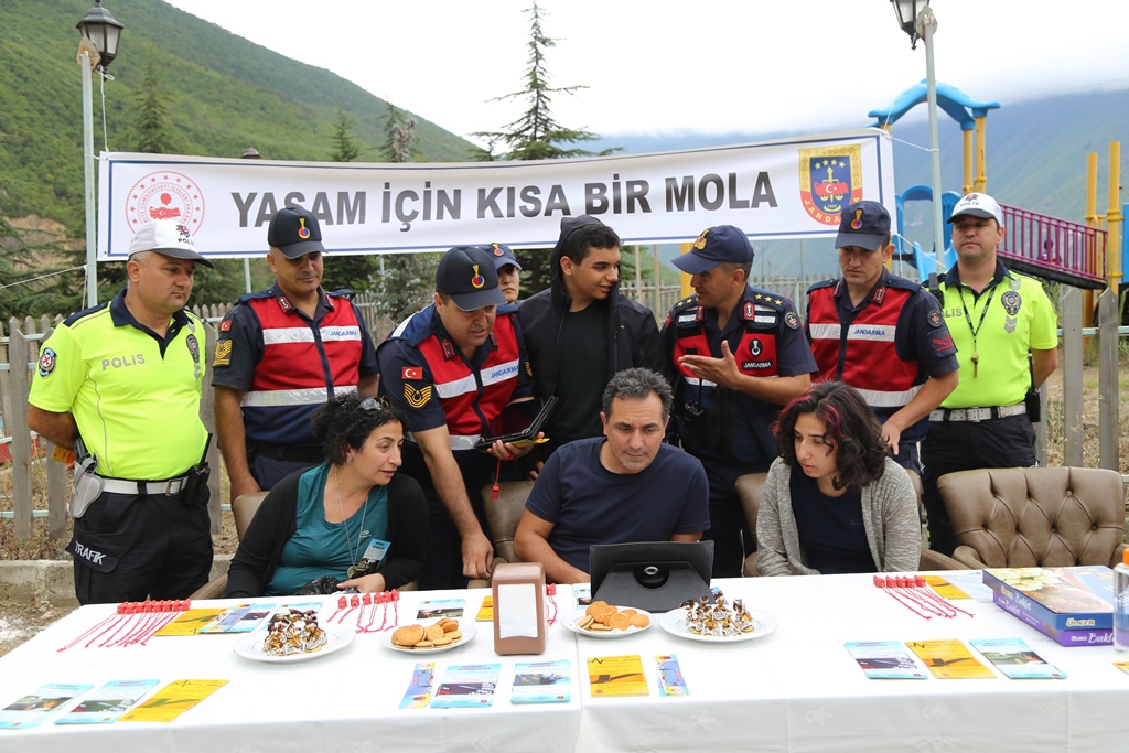 "Yaşam İçin Kısa bir Mola" sloganıyla gerçekleştirilen uygulama kapsamında sürücü ve yolculara, emniyet kemeri takmaları, seyir halinde telefonla uğraşmamaları, hız limitlerine riayet etmeleri ve uykusuz araç kullanmaları yönünde uyarılarda bulunuldu.