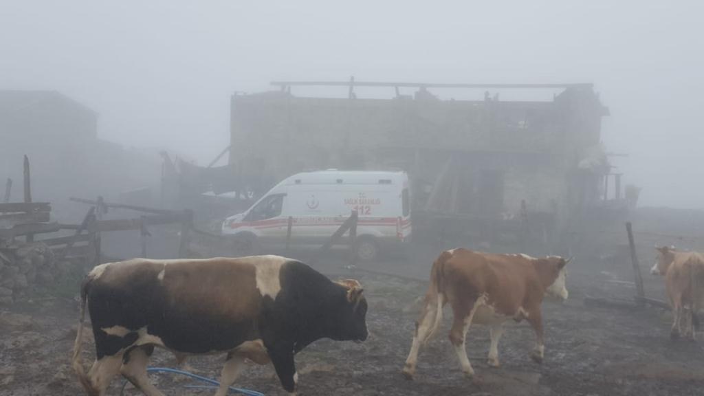 Arkadaşları durum üzerine yolun bozuk ve engebeli olması nedeniyle hastaya biran önce müdahale edilmesi için 112 acil servis ekiplerine haber verdi.