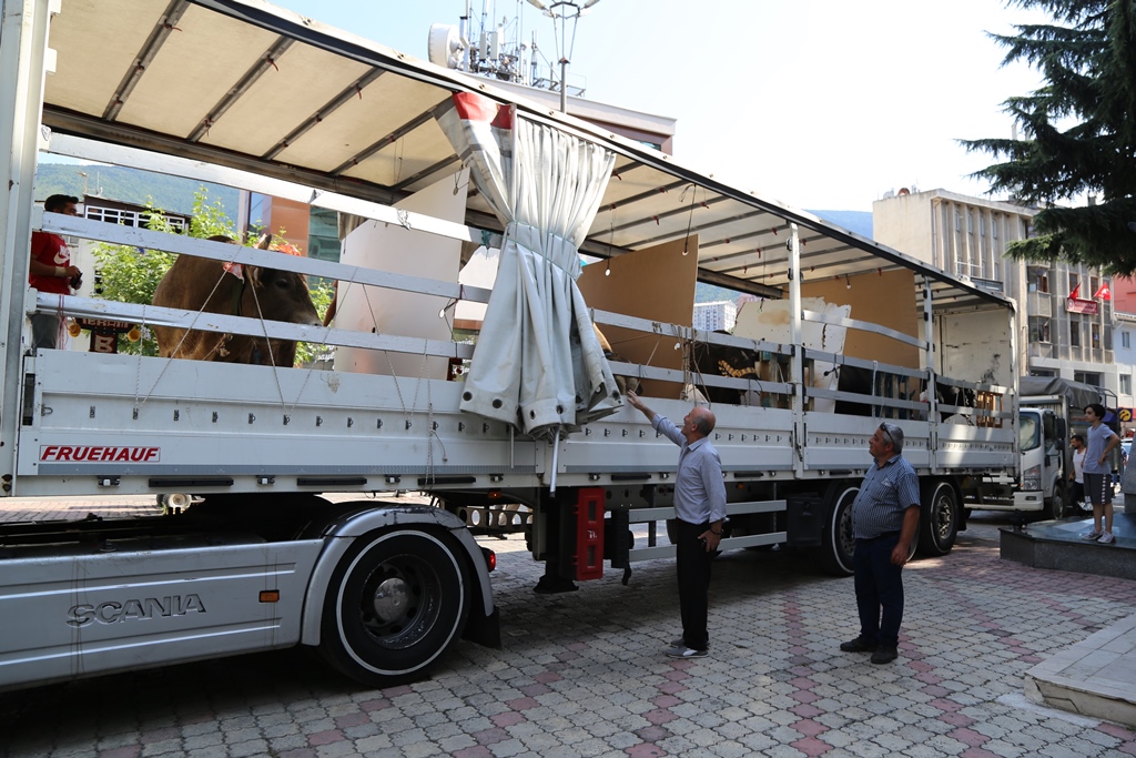 Artvin'in Kafkasör Yaylası'nda gerçekleştirilecek olan Türkiye Boğa Güreşleri Şampiyonası öncesi Muğla ve Aydın'dan TIR'larla gelen 8 boğa, Artvin'de büyük ilgiyle karşılandı.