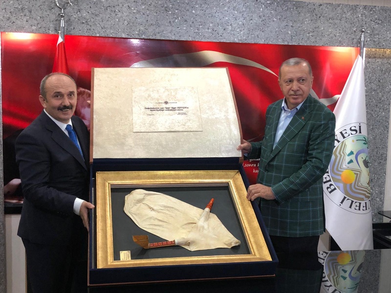 Artvin Milletvekili Erkan Balta ve Yusufeli Belediye Başkanı Eyüp Aytekin’in; Yusufeli’nin içinden geçtiği süreç hakkında yaptığı bilgilendirmenin ardından Yusufeli Belediye Başkanı Eyüp Aytekin ve Artvin Valisi Yılmaz Doruk, Cumhurbaşkanı Recep Tayyip Erdoğan’a hediye takdiminde bulundu.