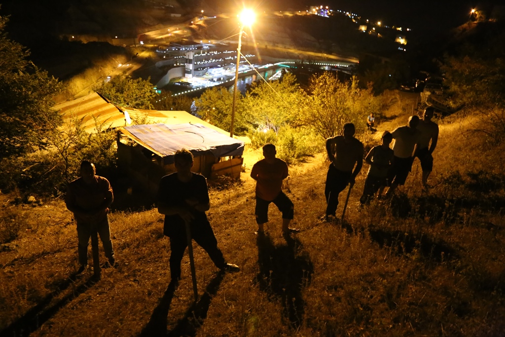 Artvin’de aç kalan ayıların mahalleye dadanması üzerine, mahalle sakinleri çareyi nöbet tutmakta buldu. Hava kararınca eline kazma, kürek, tırmık alan mahalle sakinleri sırayla nöbeti tutmaya başladı.