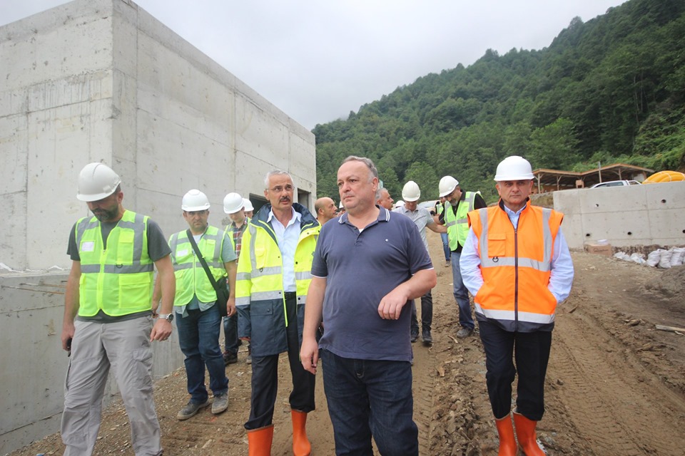 Hopa Belediye Başkanı Taner Ekmekçi, Belediye Başkan Yardımcısı Osman Akkaya ve İller Bankası Trabzon Bölge Müdürü Erdoğan Topçu, Şantiye sahasında İdari bina, klor kimya binası, jeneratör binası, filtre pres binası ve su alma yapısında incelemelerde bulundular.