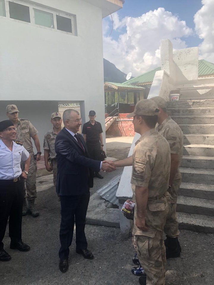 Askeri mangayı selamlayan Vali Doruk, ardından bir süre hudut bölüğünde incelemelerde bulundu. Şeref defterini de imzalayan Vali Doruk, daha sonra Jandarma Karakolu’nu ziyaret etti.