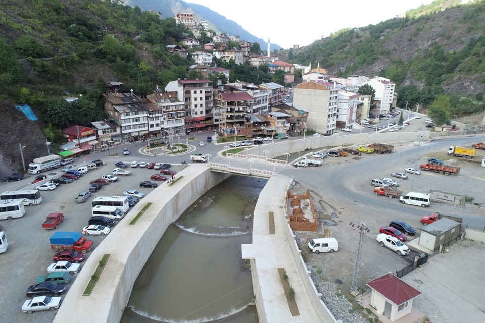 DSİ Çoruh Projeleri 26. Bölge Müdürlüğünce inşa edilen Artvin Murgul İlçe Merkezinin Murgul Deresi Taşkınlarından Korunması 3.Kısım İnşaatında çalışmalar devam ediyor.