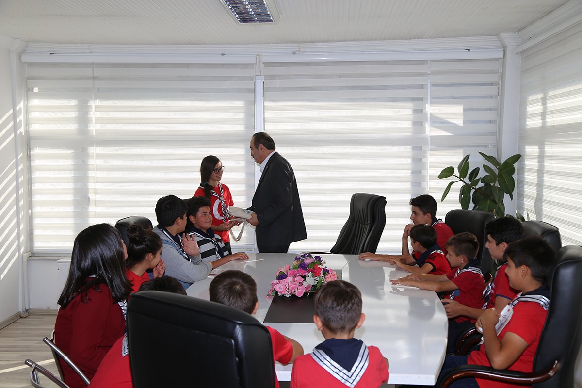 Belediye Başkanı Nihat Acar’ı izci marşı söyleyerek makamında ziyaret eden Şavşat Sahara izcileri kamp programı hakkında bilgi verdiler.