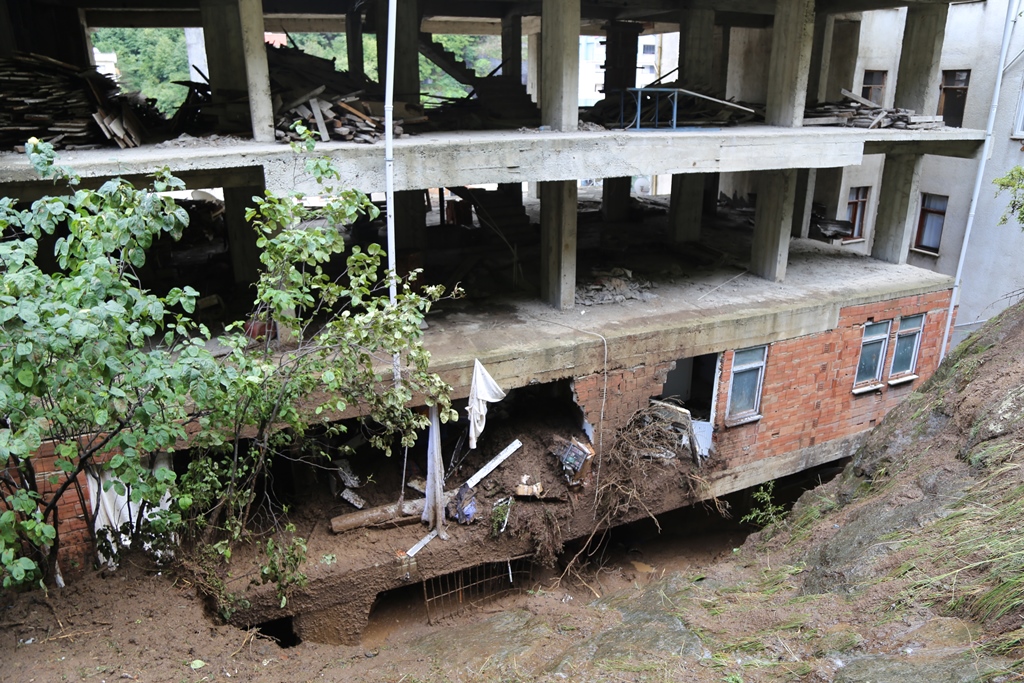 Artvin'in Borçka ilçesinde yoğun yağışın neden olduğu toprak kaymasında 5 katlı binanın iki katı çamurla doldu. Evde yaşayan Özdemir ailesi çamur yığını altında kalmaktan son anda kurtuldu.