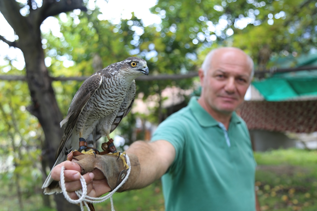 Yamakalioğlu, “Atmacayı devamlı elimize alıp gezdiriyoruz. Bunu devam elinizde alıp sevip gezdirmezseniz zaten vahşi bir hayvan o vahşiliği devam ediyor. Atmaca önce insana alışması lazım ki sonra kendi avını yapsın”.