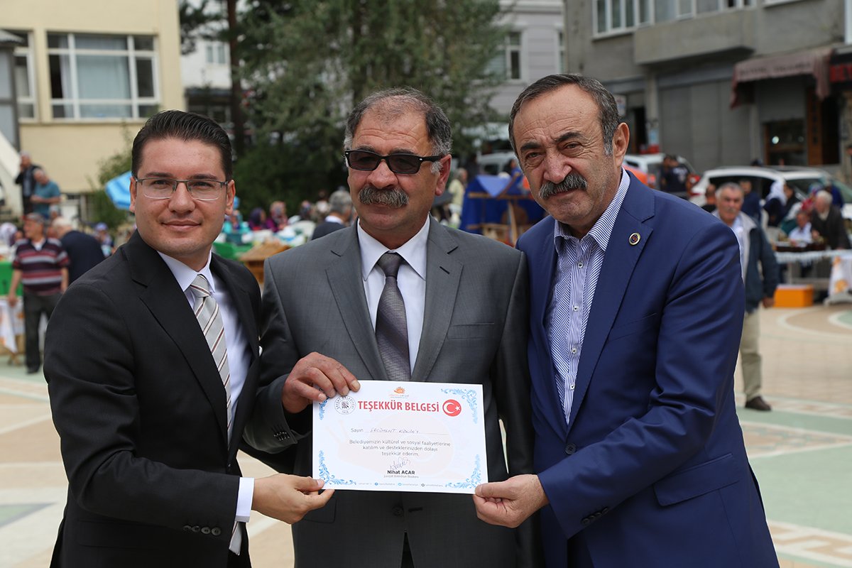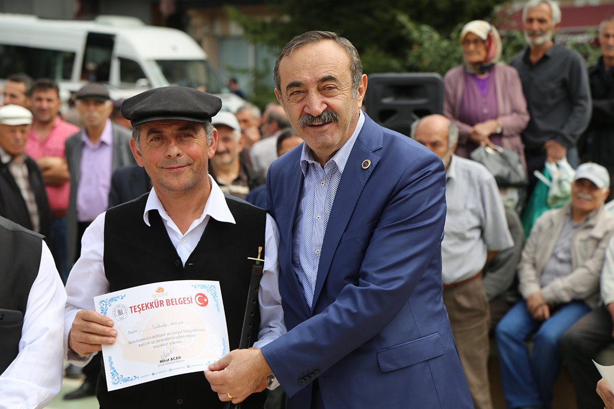 Halk ozanı Aşık İbrahim Karaya, şairlere ve Halk oyunları ekiplerine teşekkür belgeleri verildi.