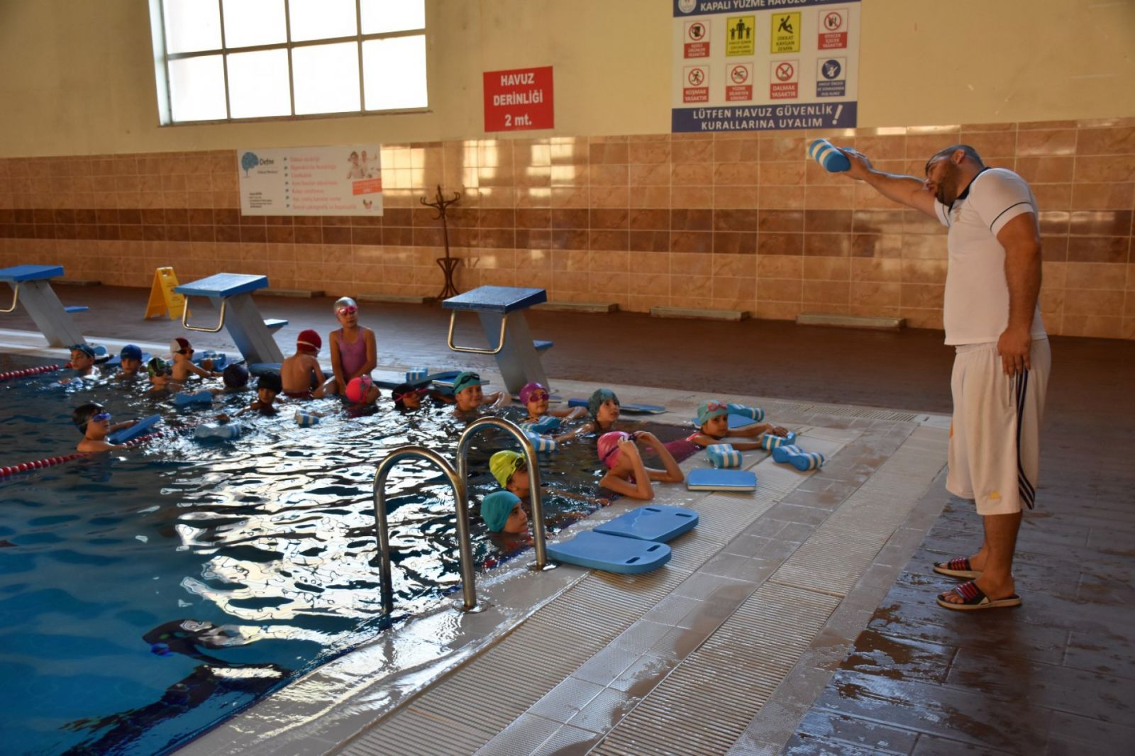 İl Milli Eğitim Müdürü Fahri Acar " Yüzme Bilmeyen Kalmasın" projesi kapsamında ilk derslerini alan öğrencileri ziyaret etti. İl Milli Eğitim Müdürü Acar, "Yüzme Bilmeyen Kalmasın" projesi kapsamında 2019-2020 eğitim öğretim yılında ilk yüzme derslerini alan öğrencileri Artvin Yarı Olimpik Kapalı Yüzme Havuzu'nda ziyaret ederek öğrencilere destek oldu. Projeye özel bir ilgi duyduğunu belirten Acar, öğrencilerin ilk ders heyecanını paylaşarak mutluluklarına ortak oldu.