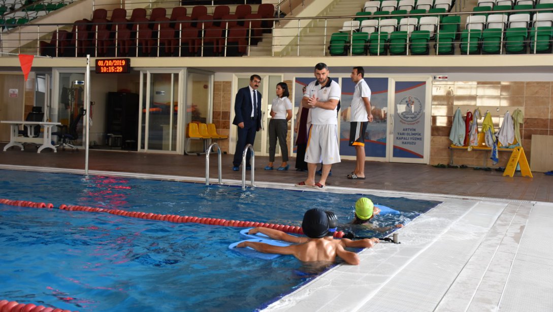 İl Milli Eğitim Müdürü Fahri Acar " Yüzme Bilmeyen Kalmasın" Projesi kapsamında Artvin Yarı Olimpik Kapalı Yüzme Havuzu’nu ziyaret etti.