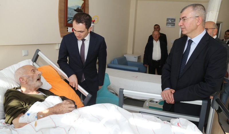 Daha sonra hastanenin Palyatif Bakım Ünitesini gezen Vali Doruk ve beraberindekiler burada tedavi gören hastalara ve yakınlarına acil şifa dileklerinde bulundu.