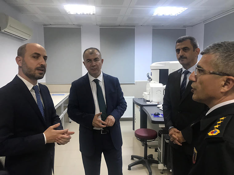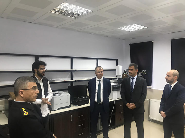 Üniversitenin BİLTEKMER Müdürü Doç. Dr. Emrah Peşman da konuklara Merkezi Araştırma Laboratuvarında yürütülen çalışmalar hakkında kısa bilgiler aktardı.