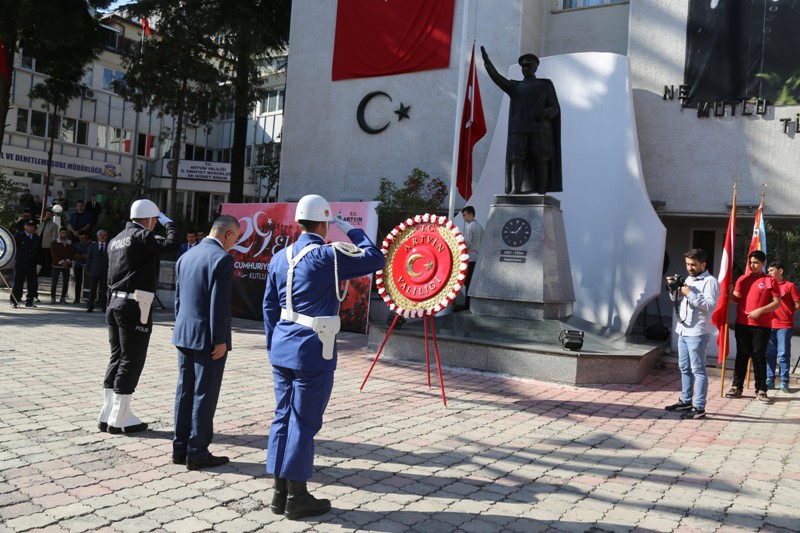 Artvin'de, 29 Ekim Cumhuriyet Bayramı etkinlikleri kapsamında Atatürk Anıtı'na çelenk sunuldu.