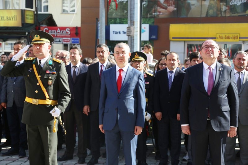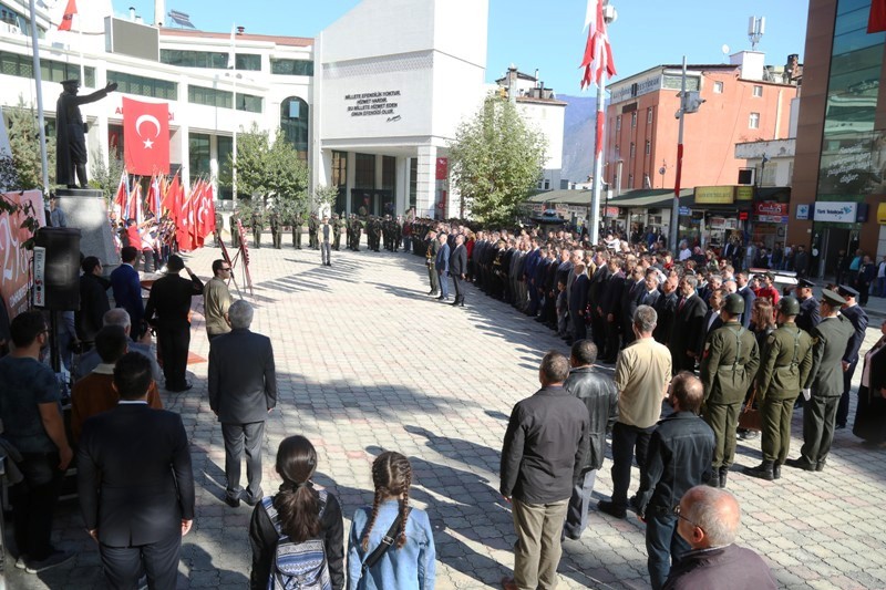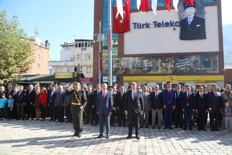 Atatürk Anıtı önünde düzenlenen törene, Artvin Valisi Yılmaz Doruk, Garnizon Komutanı Piyade Albay Şükrü Şenduran, Artvin Belediye Başkanı Demirhan Elçin, kurum amirleri törende yerlerini aldılar.
