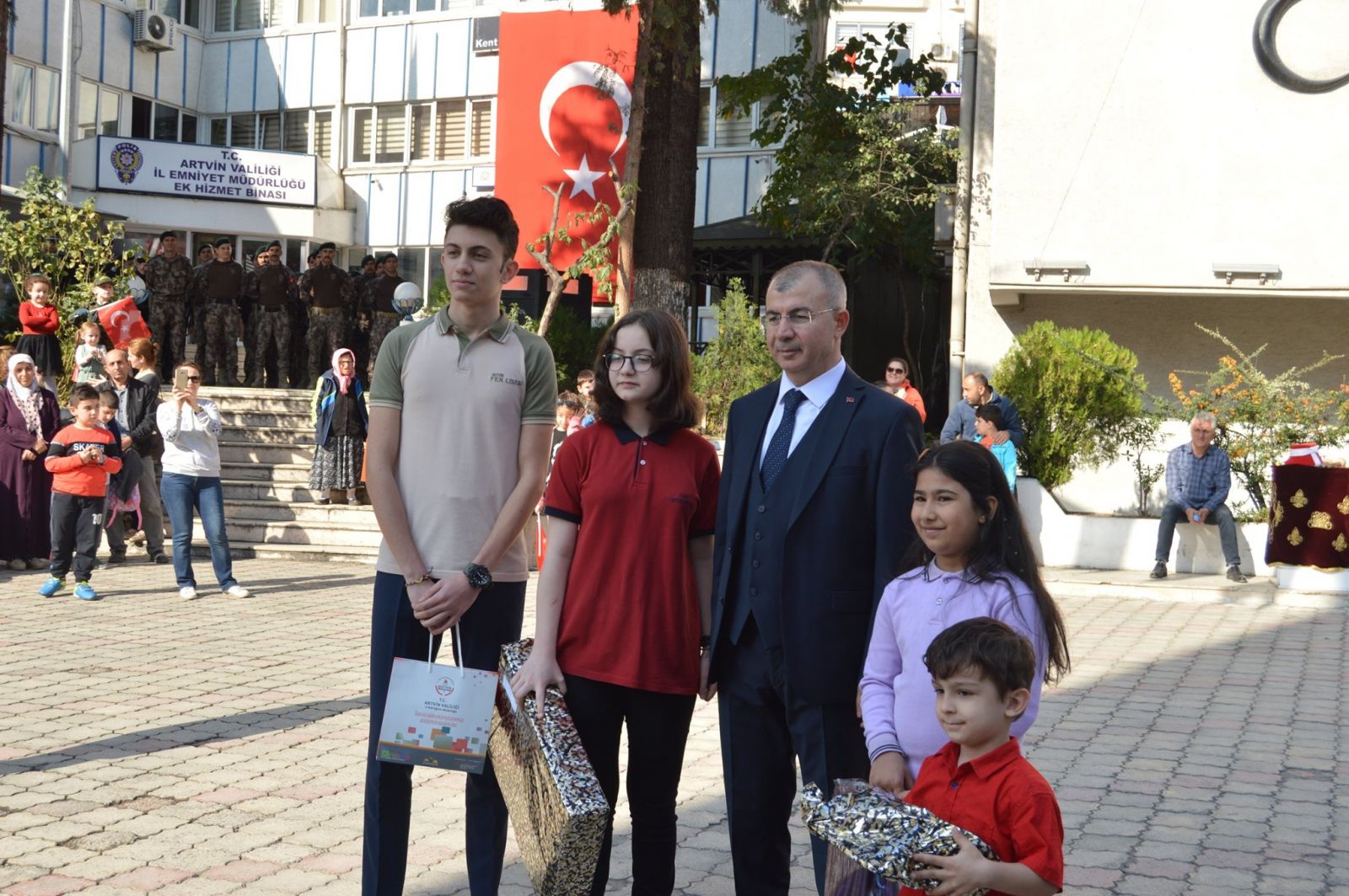 Artvin Valisi Yılmaz Doruk’un valilik makamında tebrikleri kabul etmesiyle başlayan 29 Ekim Cumhuriyet Bayramı kutlamaları Milli İrade Meydanı’ndaki etkinliklerle devam etti.