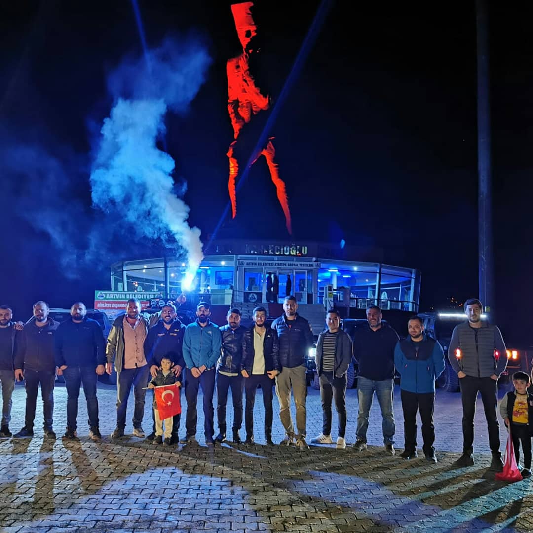 Çok sayıda offroad kulübü üyesinin katıldı programda konuşan Artvin Offroad Spor Kulübü Başkanı Murat Yılmaz, “Cumhuriyetimiz kuruluşunun 65’inci yılını geride bıraktık. Bu anlamlı günde bizde offorad tutkunları olarak Atatürk posteri ve Türk bayrağı eşliğinde araçlarımızla birlikte farkındalık yaratmak istedik. Önce şehir turu atarak daha sonra Türkiye’nin en büyük Atatürk heykelini ziyaret ettik. Bizde destek olan bütün üyelerimize teşekkürlerimi sunuyorum. Bu vesileyle başta Gazi Mustafa Kemal Atatürk ve silah arkadaşlarına minnettarlığımızı bir kez daha buradan belirmek istiyorum ruhları şad olsun” dedi.