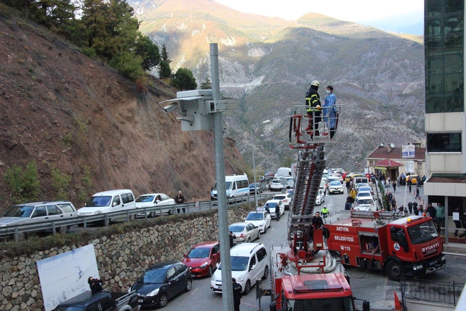 Artvin Devlet Hastanesinde, UMKE, AFAD ve Artvin Belediyesi İtfaiye ekiplerince gerçekleştirilen yangın tatbikatında, senaryo gereği hastanenin dördüncü katındaki hemşire odasında yangın çıktı. Yangını fark eden hastane yangın söndürme personeli bir yandan yangın söndürme tüpleriyle alevlere müdahale ederken diğer yandan da durumu itfaiye, UMKE ve AFAD ekiplerine bildirerek yardım istedi.