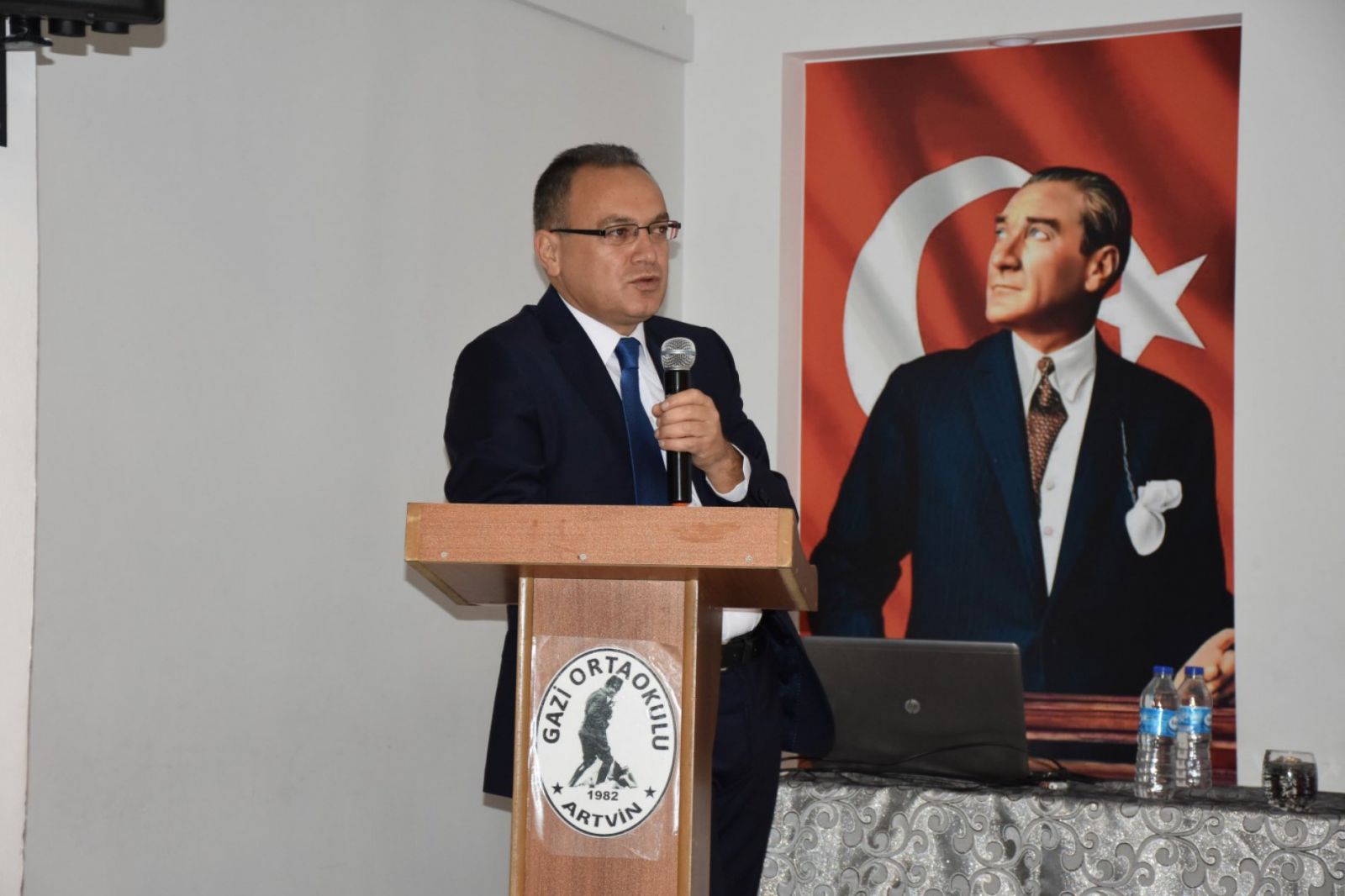 Milli Eğitim Bakanlığı ile işbirliği içerisinde Milli Eğitim Müdürlüğü tarafından düzenlenen, Milli Eğitim Bakanlığı Başmüfettişi Gökhan Ergün tarafından Gazi Ortaokulunda verilecek olan seminere İl Milli Eğitim Müdürümüz Fahri Acar, Milli Eğitim Müdür Yardımcıları Kenan Güray ve Erol murtezaoğlu, Şube Müdürleri, Maarif Müfettişi Murat Özkan, ilimizde görev yapan okul ve kurum yöneticileri katıldı.