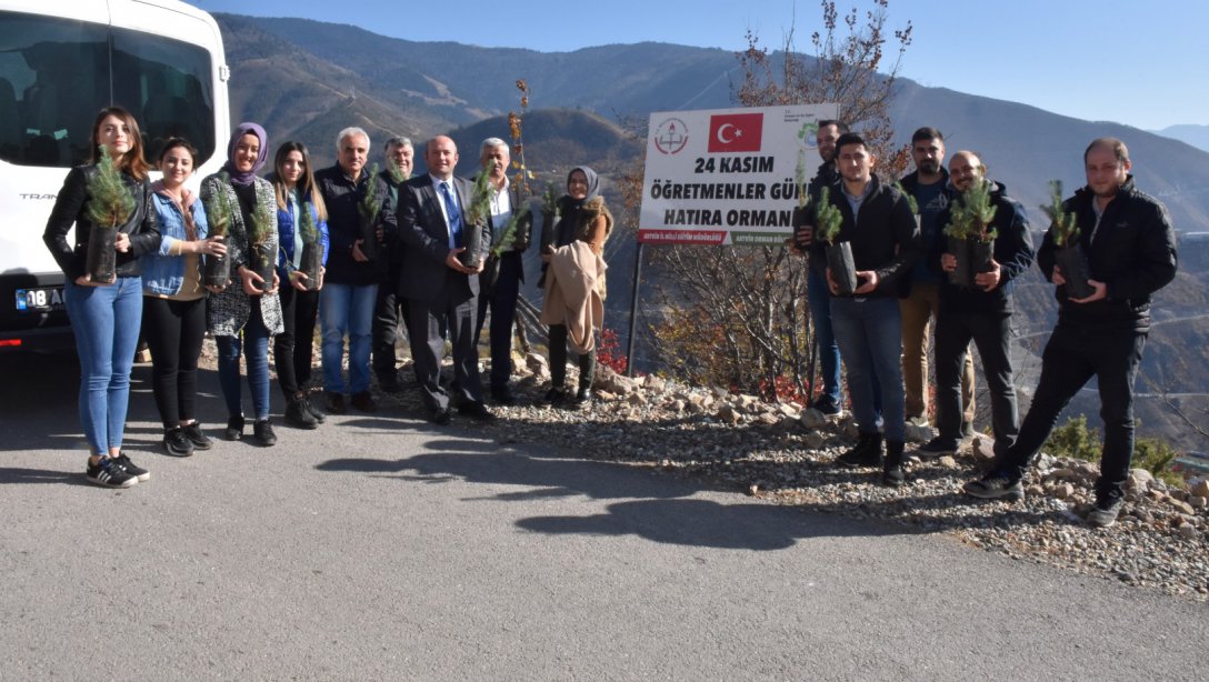 Fidan dikim etkinliğine İl Milli Eğitim Müdür Yardımcısı Erol Murtezaoğlu, Artvin Orman İşletme Müdürlüğü Müdür Yardımcısı Alim Çelik, İl Milli Eğitim Müdürlüğü Şube Müdürü Metin Özyer katıldı. Fidanlıktan dikecekleri fidanı kendileri seçerek fidanlarını diken öğretmenler 24 Kasım Hatıra Ormanı' na kendi hatıralarını bırakmış oldular.