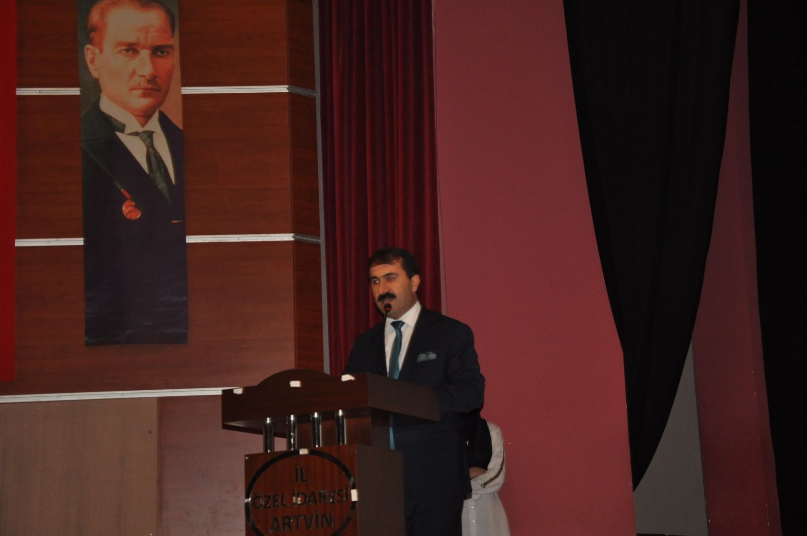 Artvin Valiliği önündeki Atatürk Anıtı’na çelenk sunumuyla başlayan etkinlikler Ahmet Hamdi Tanpınar Kültür Merkezi’nde düzenlenen programla devam etti.