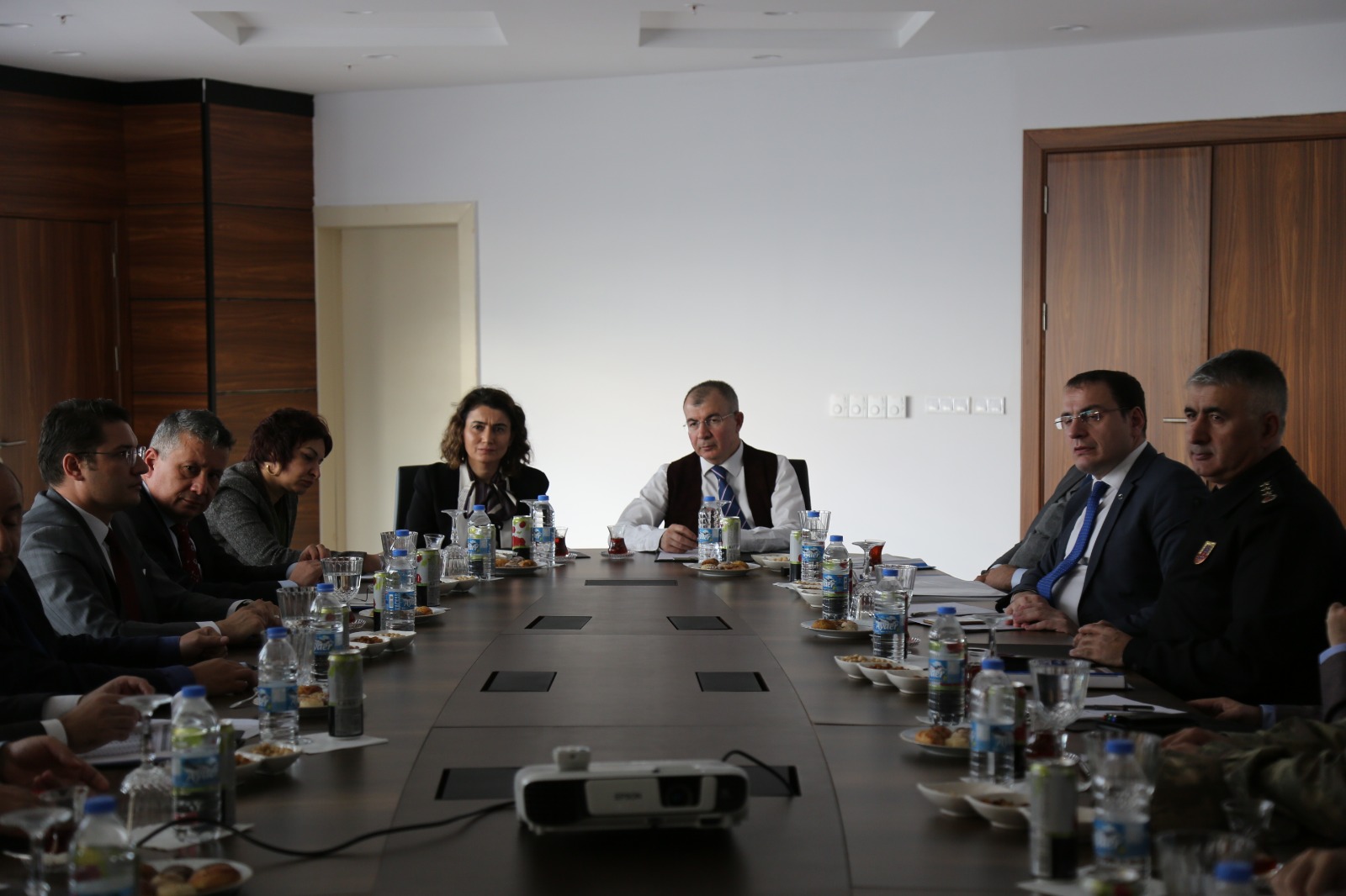 Vali Yılmaz Doruk başkanlığında, Sarp Mülki İdare Amirliği Toplantı Salonunda düzenlenen toplantıda, özellikle son günlerde Sarp Sınır Kapısında oluşan tır yoğunluğunun giderilmesi, sınır kapısında yürütülen iş ve işlemler, gümrük sahasındaki kurumlar arasında koordine edilecek konular görüşüldü.